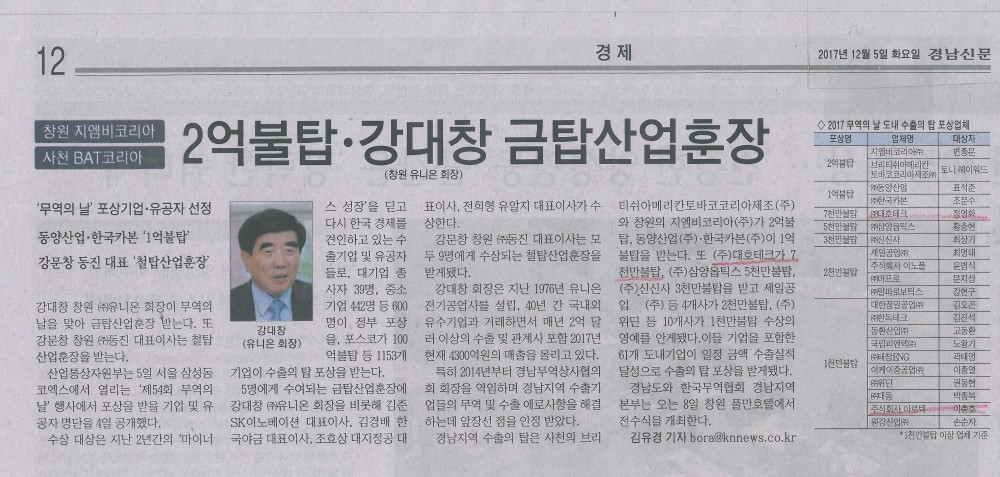 2017.12.5 [경남신문] 7천만불 수출탑 보도자료 입니다.